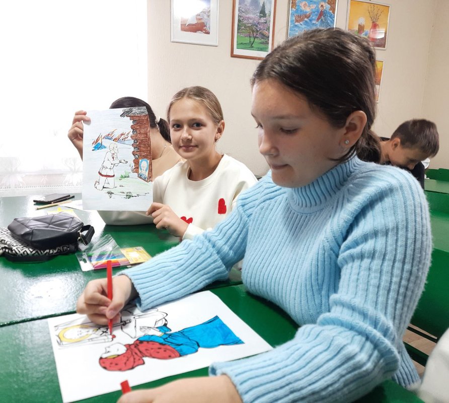 "Отче Николае, моли Христа Бога, спастися душам нашим", такой молитвой вдохновлённые дети, от жития святого, обратились к угоднику Божьему, и преступили к творческим работам - каждый выбрал себе раскраску с изображением фрагментов жития и чудес святого. Все работы получиличь очень красивыми.Урок прошел легко, на душе у каждого было светло и радостно: видимо сам святитель Николай незримо присутствовал на занятии и во всем помогал.