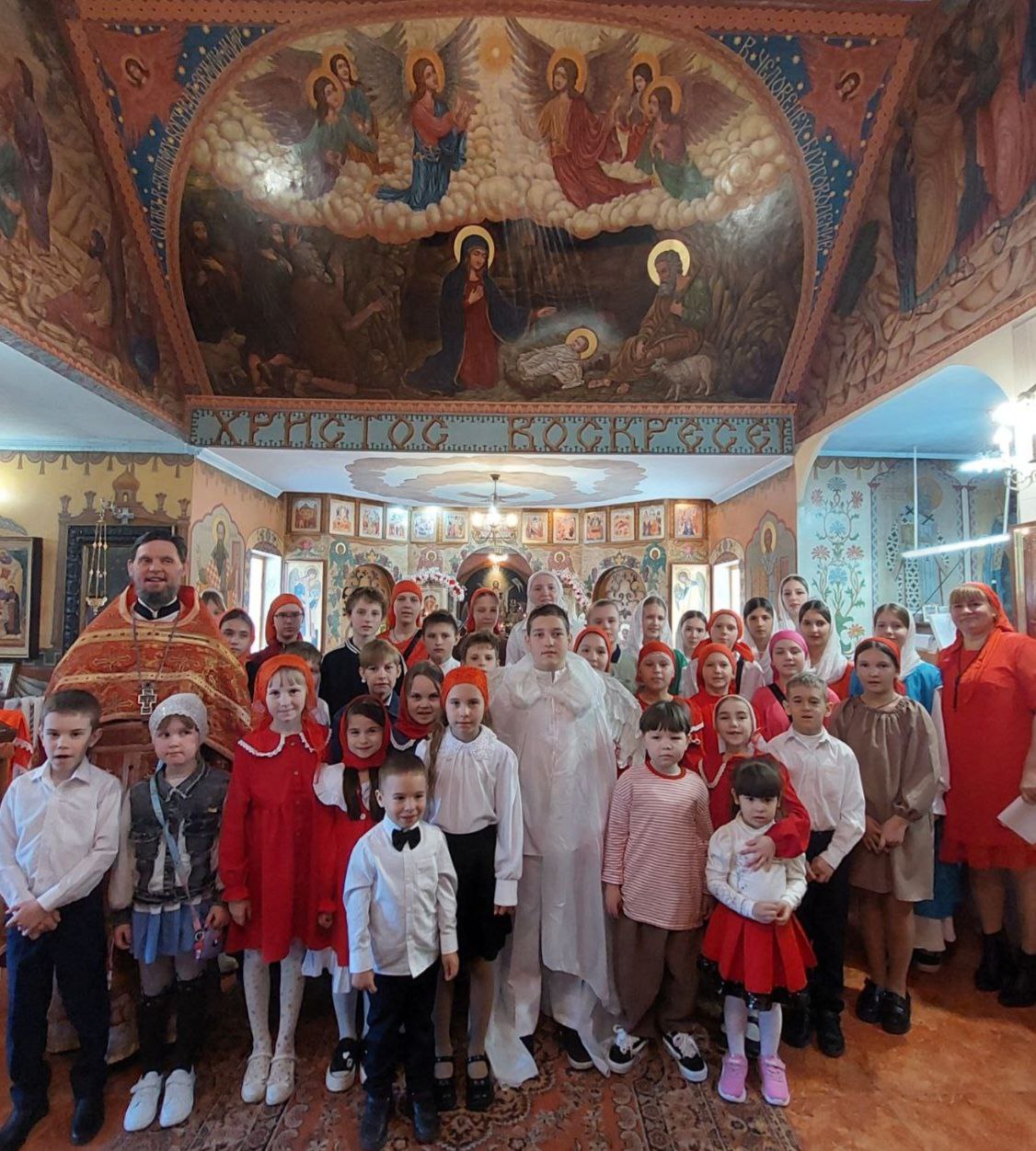 Настоятель о. Вадим и учащиеся воскресной школы поздравили своего преподавателя …
