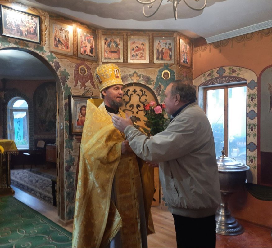 23 октября, в день памяти преп. Амвросия Оптинского, в Свято-Рождественском храме была отслужена Божественная литургия. По завершении Божественной литургии с поздравительным словом к настоятелю прот. Вадиму Шанаурину, который отмечает свой день рождения в этот день, обратилась преподаватель воскресной школы Польченко Ксения Викторовна. К поздравлениям присоединились прихожане, которые несмотря на рабочий день, пришли поздравить своего батюшку. Множество теплых и добрых пожеланий было произнеснесено в этот день.
